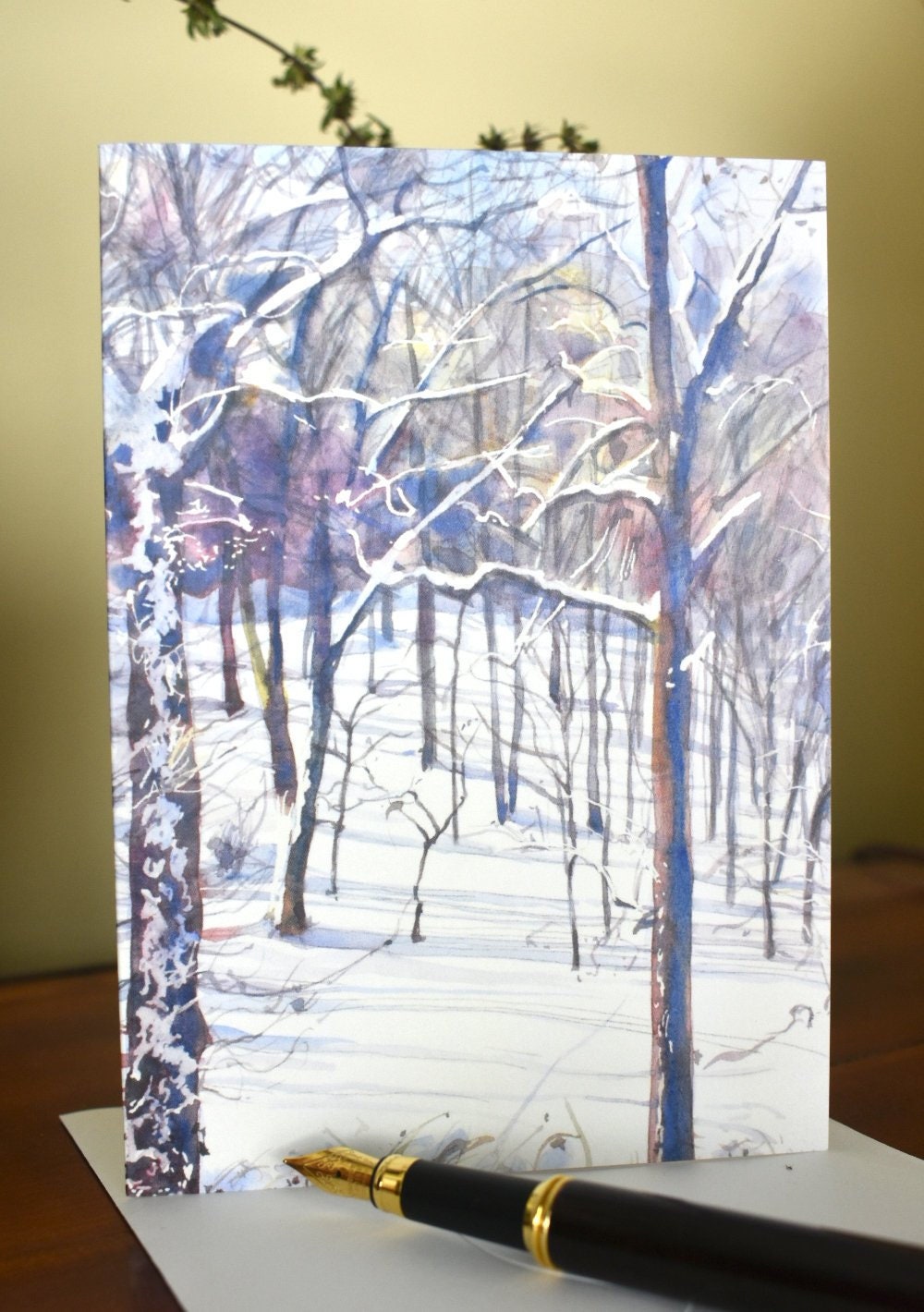 Card is of an original watercolor painting by Polly Krumbhaar Lewis. With the right image, a greeting card can be a gift all on its own! These cards measure approximately 4" x 6", and look striking when framed on your wall or shelf.